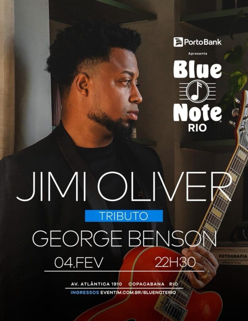 O renomado guitarrista mineiro Jimi Oliver desembarca no palco do Blue Note Rio, em Copacabana, para apresentar seu tributo a um dos maiores nomes da música mundial: George Benson. A apresentação acontece no dia 04 de fevereiro, quarta-feira, às 22h30.