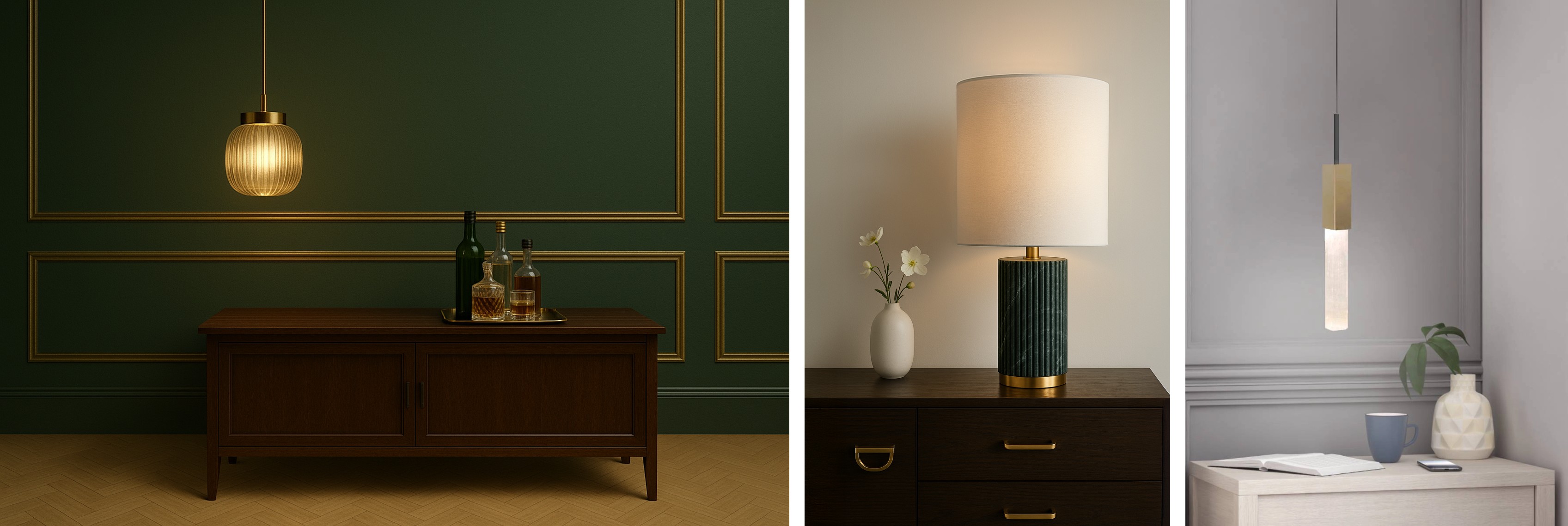 | Fotos 1 e 2 – divulgação Yamamura Collection. Foto 3 – divulgação Dna Lustres & Decor |