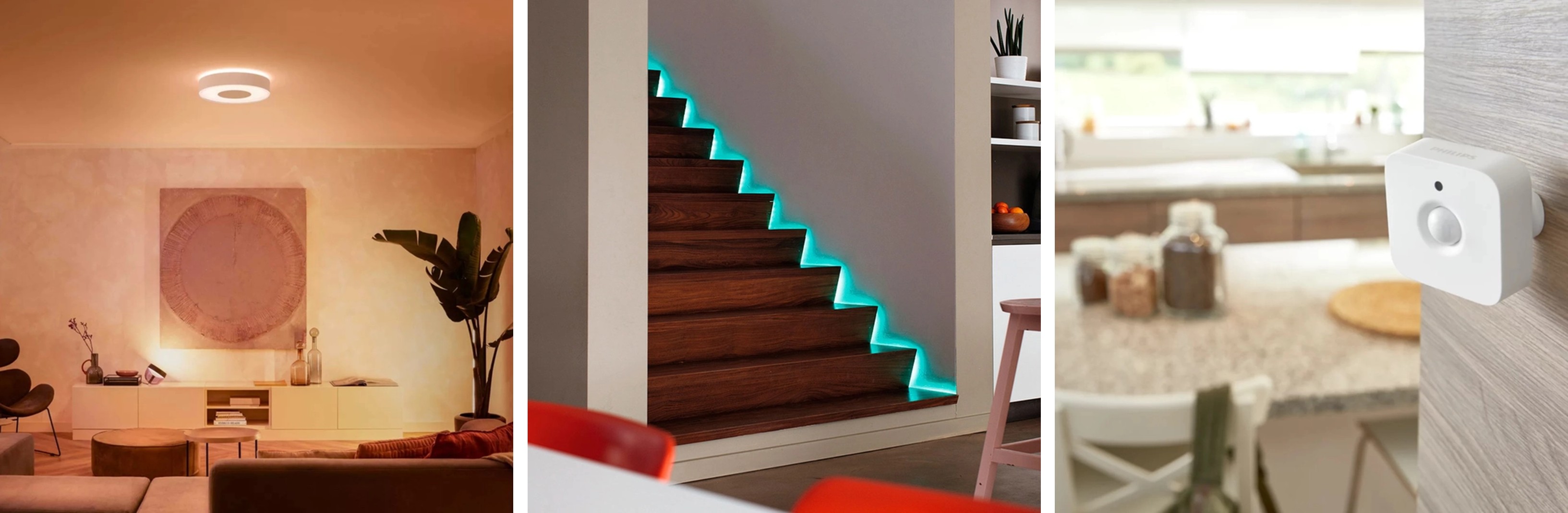 | Plafon, fitas de led e sensor de movimento | Divulgação Philips Hue |