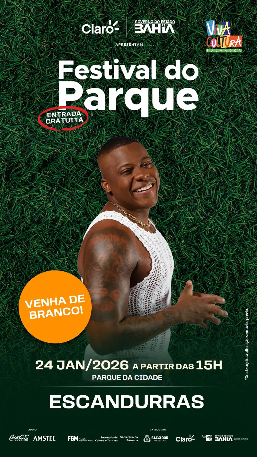 “Vai ser uma delícia curtir o sábado nesse clima de festa e família! Espero todo mundo para a gente celebrar no Parque da Cidade e registrar mais um momento inesquecível juntos. Vá de branco pra ficar mais bonito!”, afirma o artista.
