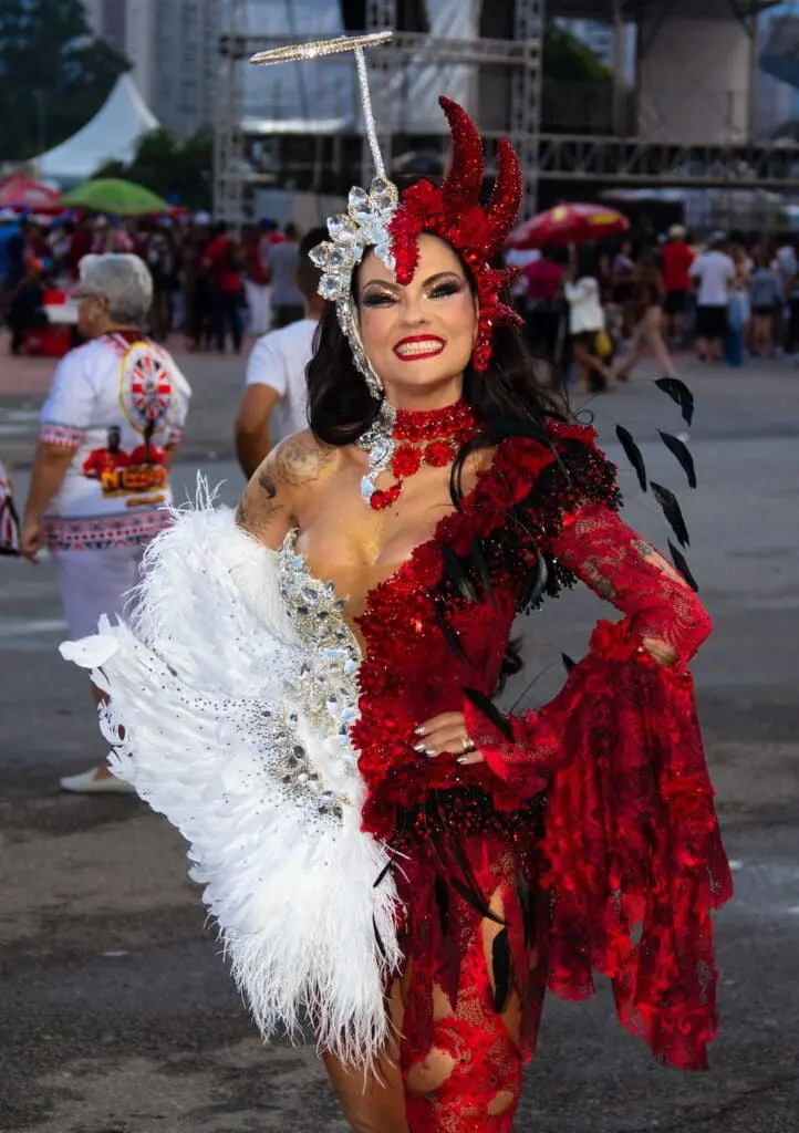 Na noite deste último domingo, 25 de janeiro, durante o segundo e último ensaio técnico da agremiação no Sambódromo do Anhembi, a diva confirmou esse protagonismo ao surgir com um figurino absolutamente impactante, que representava com elegância e força simbólica a dualidade entre o bem e o mal, tema central do enredo “Anti-Herói Brasil”, que a Tucuruvi apresentará no próximo dia 15 de fevereiro na passarela do samba.