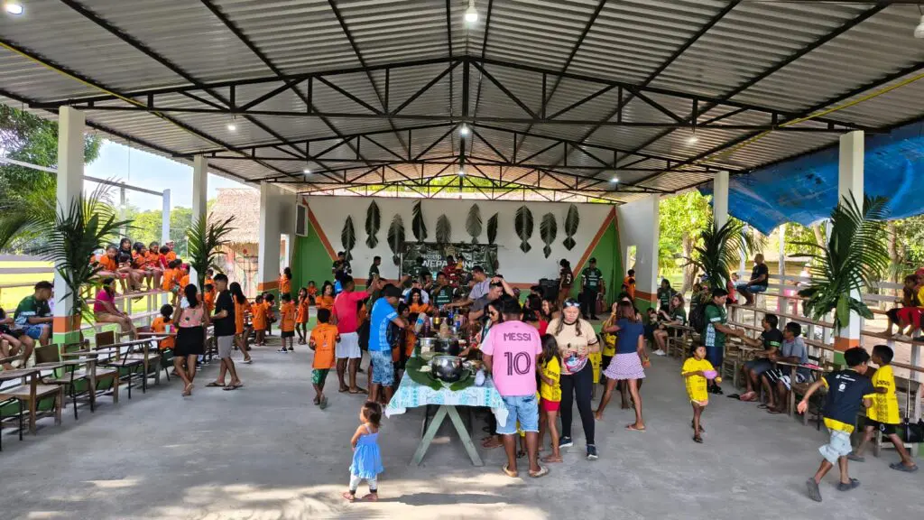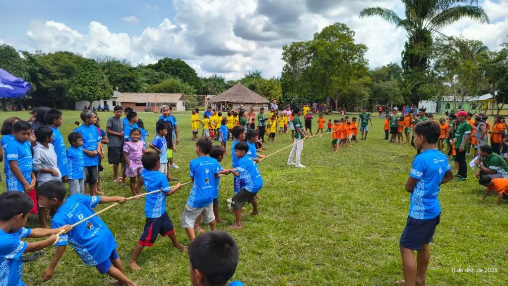 As equipes foram organizadas por cores, com cada cor representando uma escola das comunidades indígenas participantes: Escola Wasiri (time amarelo), da comunidade Terra Santa; Escola Mypynugkuri (time laranja), da comunidade Ilha Miquiles; Escola Karawin (time roxo), da comunidade Monte Horebe; e Escola Manoel Michiles Filho (time azul), da comunidade Nova Esperança. As atividades fortaleceram o espírito coletivo, a convivência comunitária e a integração entre os territórios participantes, princípios centrais do evento.