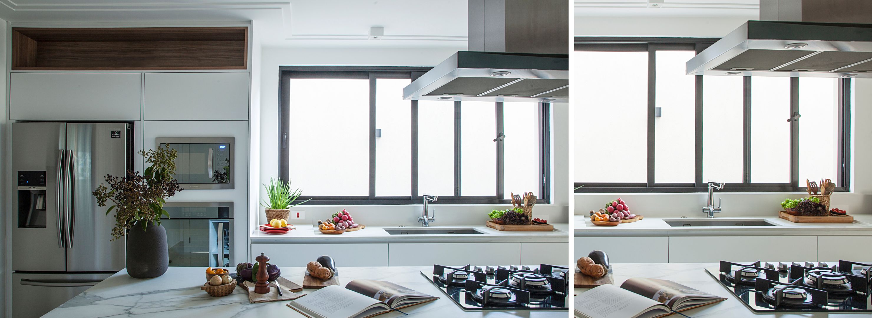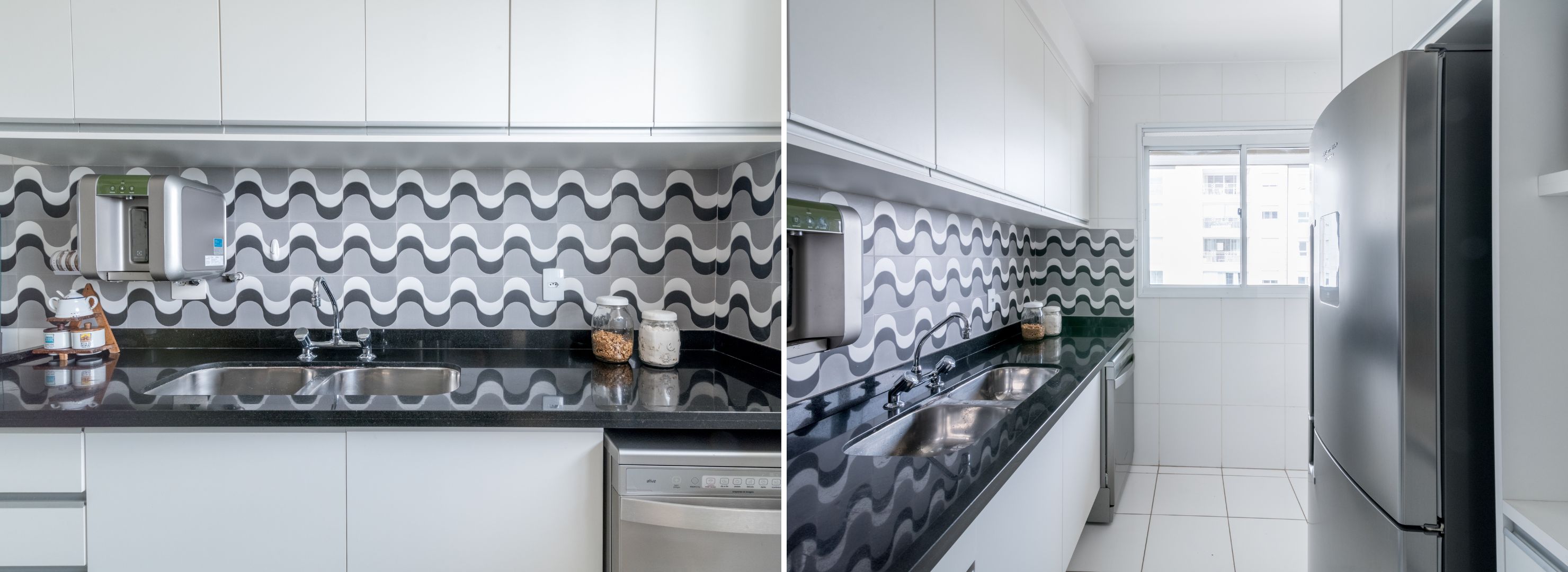 Em uma situação oposta, quando as dimensões da cozinha permitem, a instalação de duas cubas, uma ao lado da outra, é uma mão na roda para quem precisa ganhar tempo em tarefas simultâneas. “Esta estratégia também é eficaz sob a ótica de questões religiosas ou culturais, caso da cozinha Kosher, que precisa da separação entre alimentos e carnes, uma vez que não podem ter contato durante o preparo“, contextualiza Isabella.