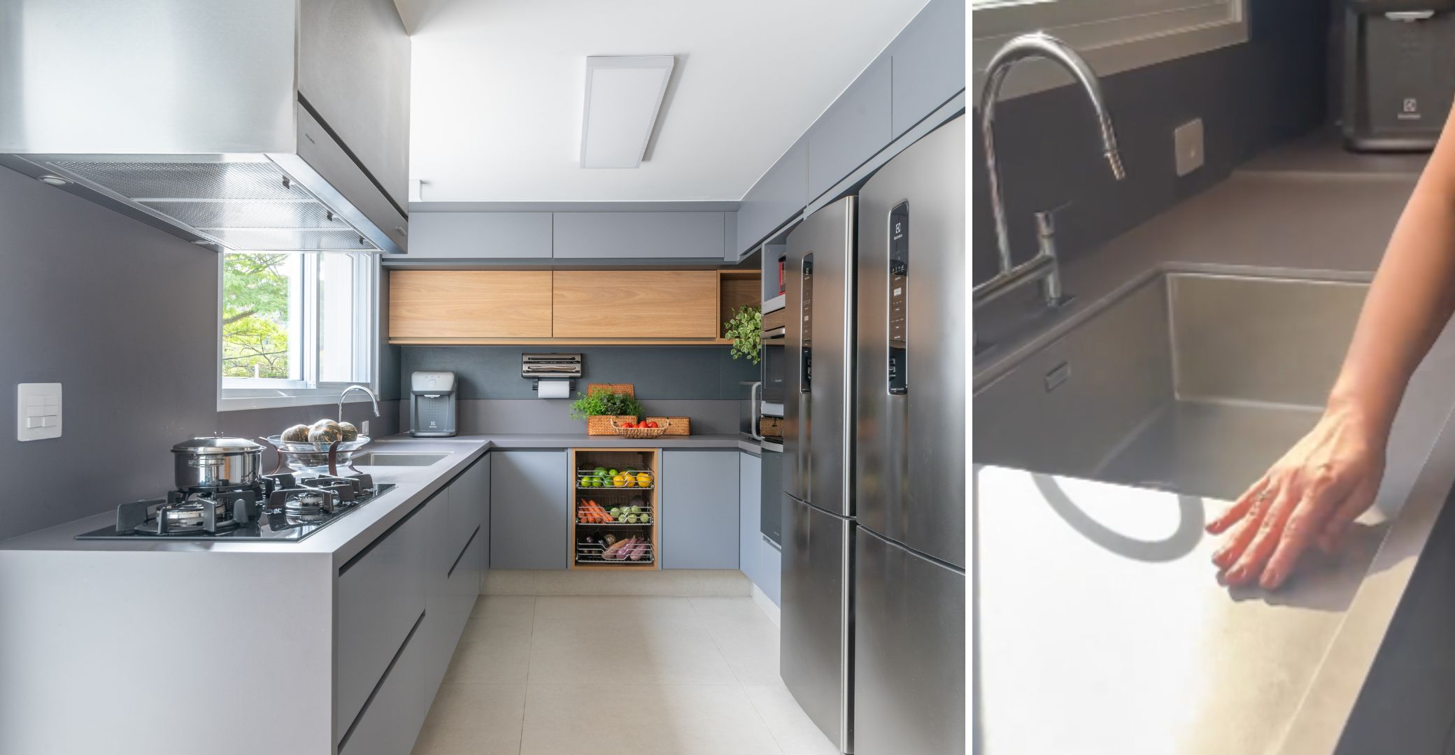 A profissional afirma que, além do tamanho da cozinha, o projeto deve levar em consideração o modo como o ambiente será utilizado e as preferências do cliente. “Muitas pessoas compartilham sua intenção de contar com duas cubas para a separação das funções, enquanto outras preferem concentrar todas as atribuições em um único espaço. Meu trabalho é entregar as melhores condições dentro das características que encontro“, analisa.