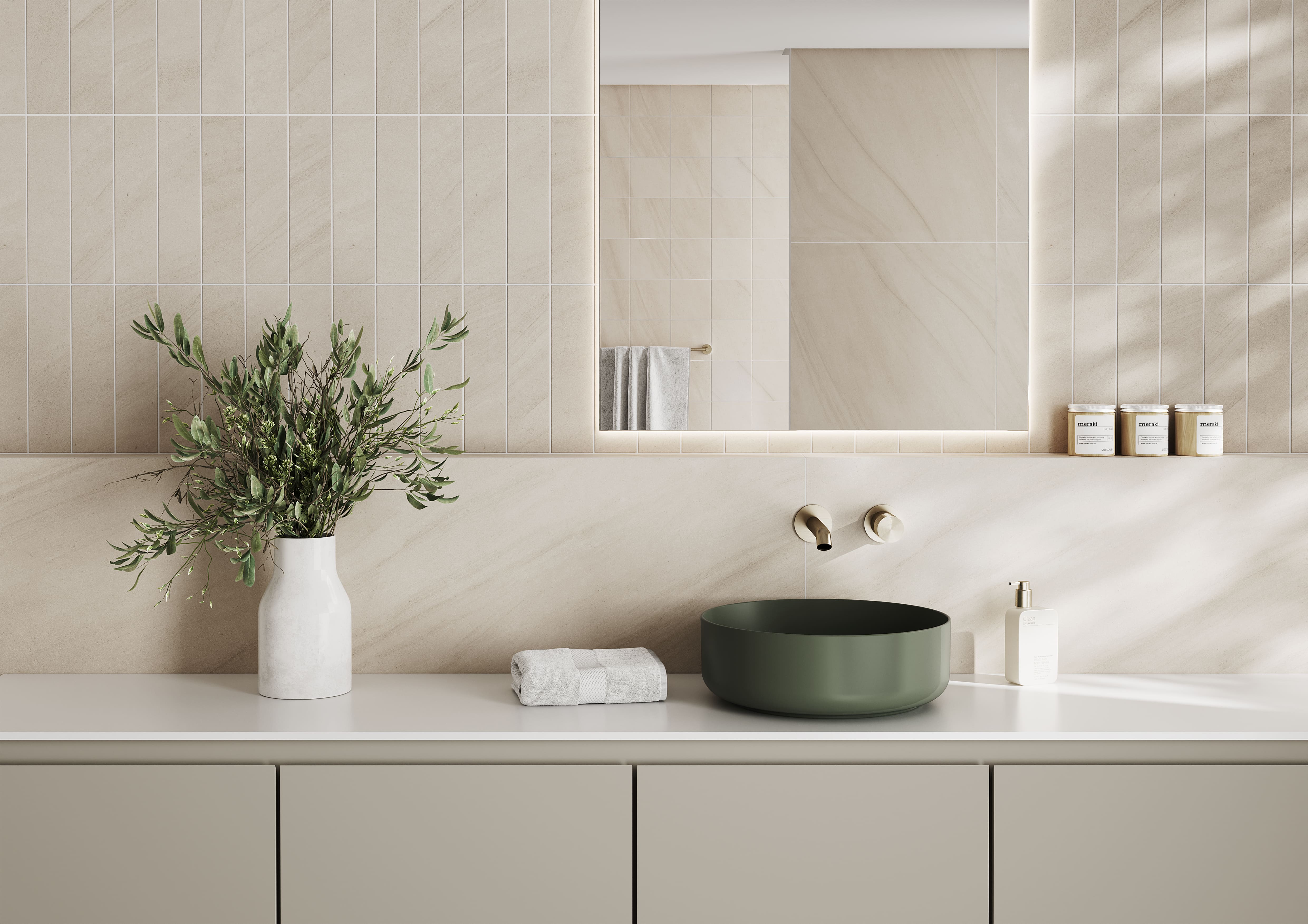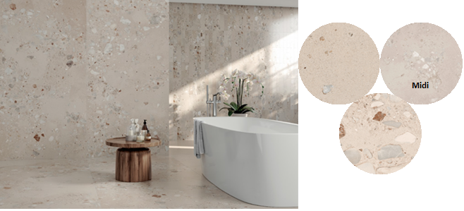 | – Qual o acabamento certo para os ambientes em contato com a água? Levando em consideração que o acabamento polido não é a opção, as versões acetinada (ou mate), que se evidencia pela aparência natural, sem brilho, de textura sedosa e aspecto aconchegante; e o micro relevo, que graças ao acabamento tecnológico presente nas coleções da Roca Cerámica e Incepa propiciam a autenticidade do toque e a textura natural das pedras, passam a contar com a aplicação da tecnologia Soft Tec – novidade das marcas para 2026. |