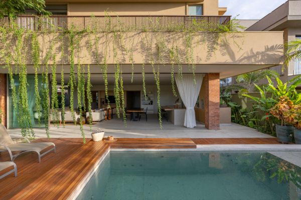 Se na arquitetura de interiores vivemos um desejo tão proeminente de conexão com o natural, na parte externa das residências ou condomínios esse anseio fica muito mais evidente dentro de uma abordagem biofílica dos projetos. Esteticamente, a madeira inspira harmoniza, acolhimento e permanência, considerando que essas áreas precisam, de fato, entregar essas sensações durante os momentos de lazer.